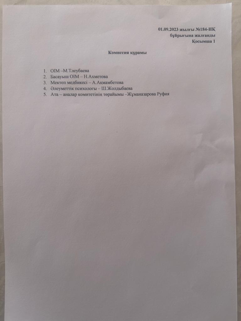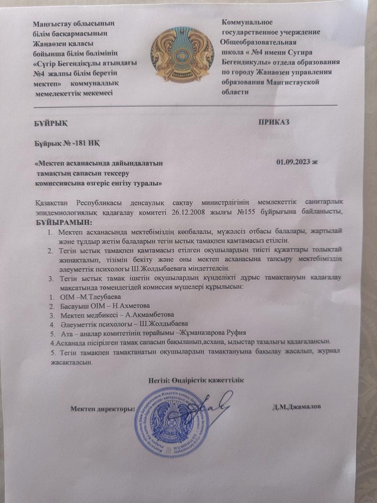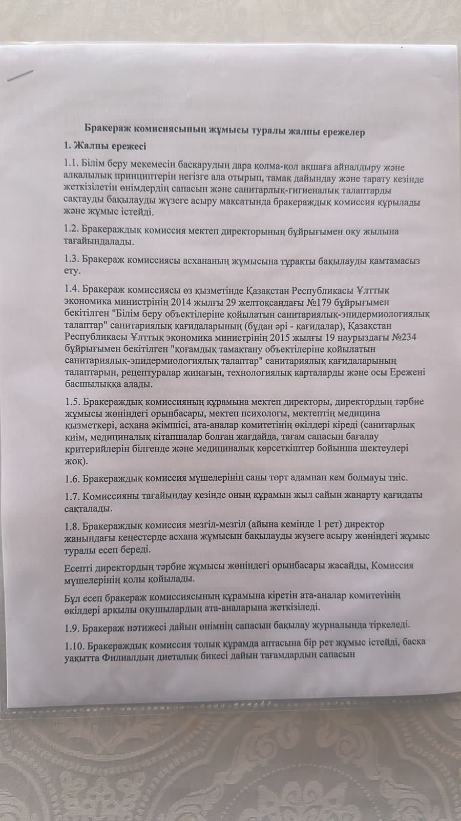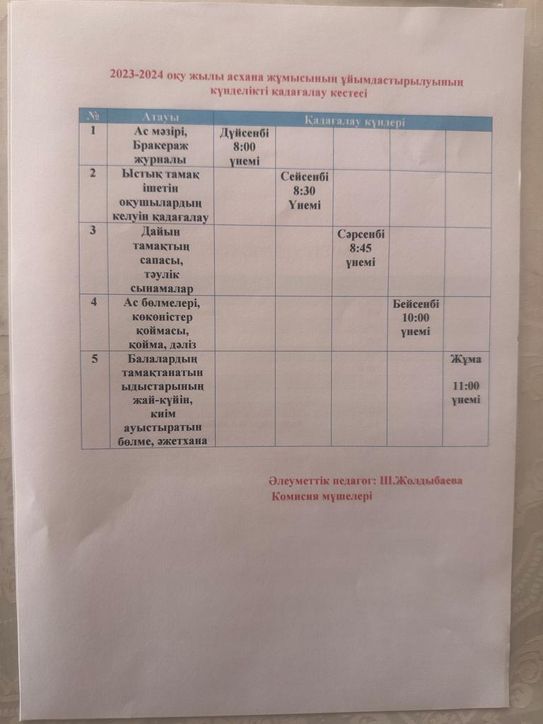 Мектеп асханасында дайындалатын тамақтың сапасын тексеру комиссиясына өзгеріс енгізу туралы