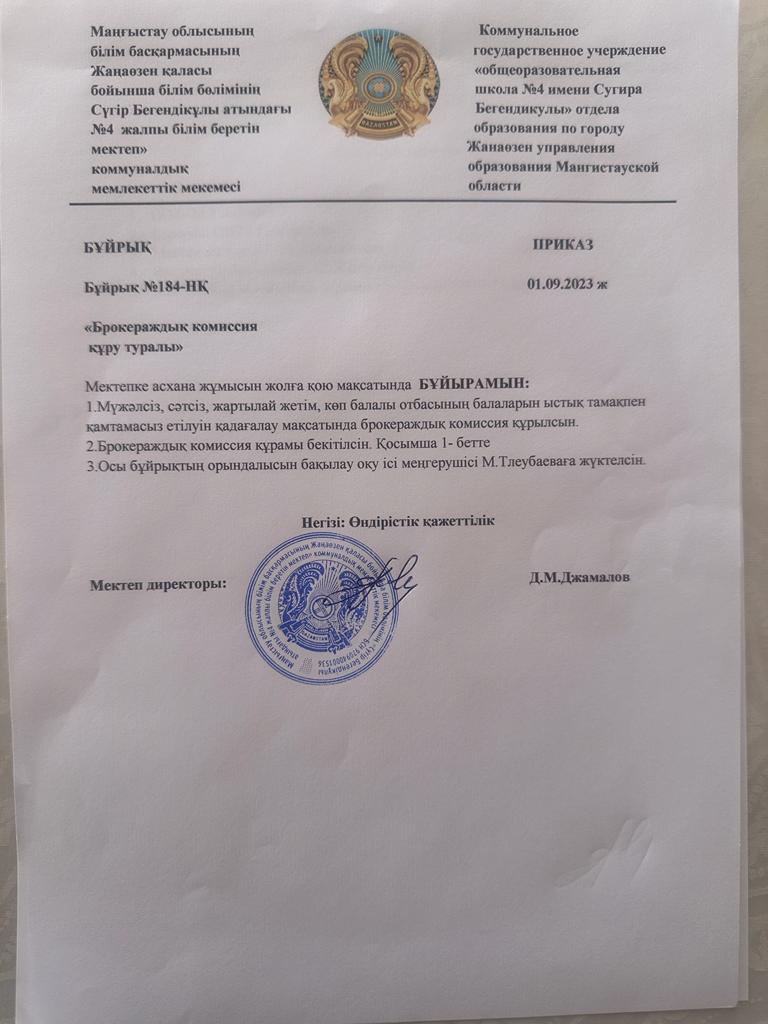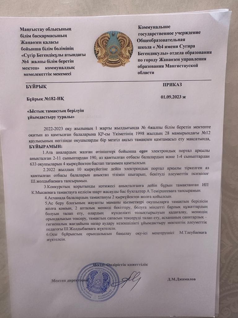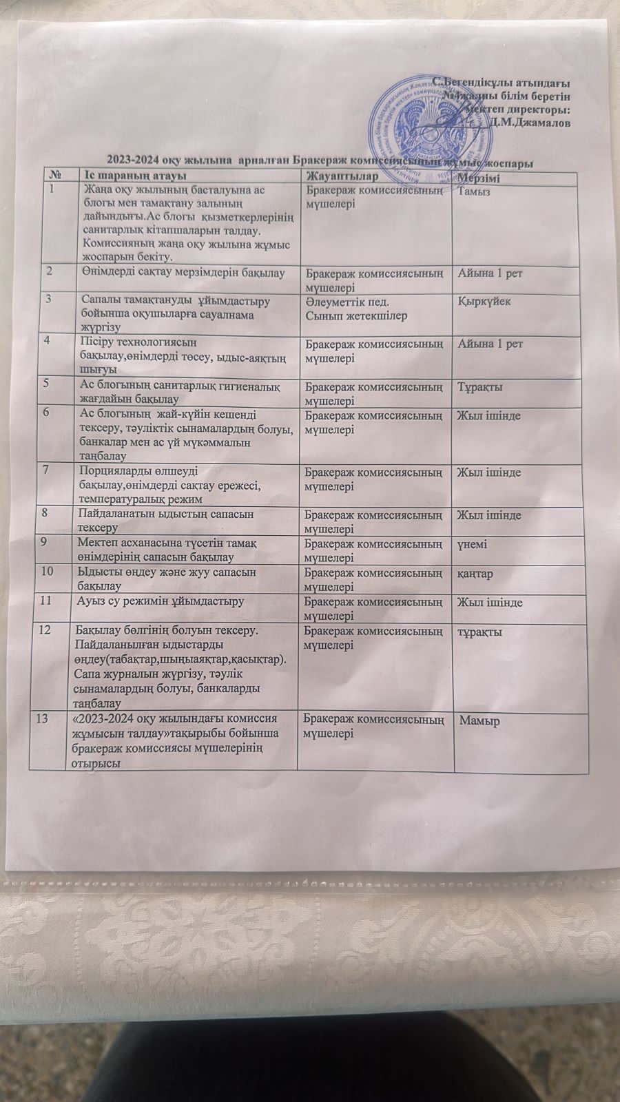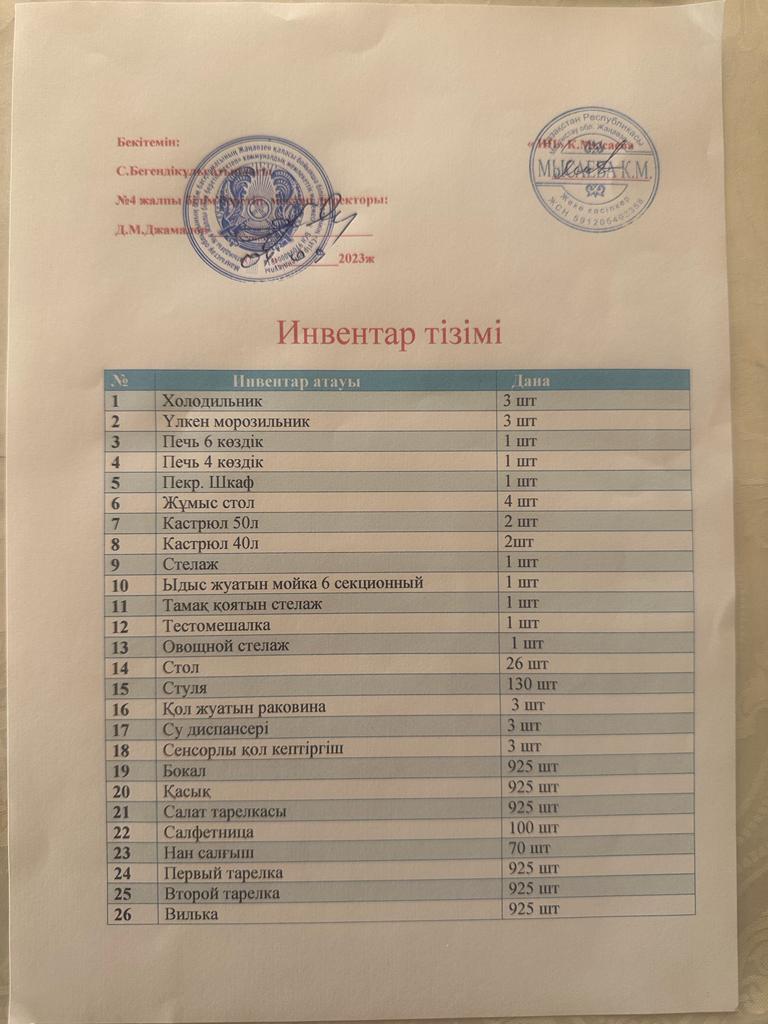 Мектеп асханасында дайындалатын тамақтың сапасын тексеру комиссиясына өзгеріс енгізу туралы