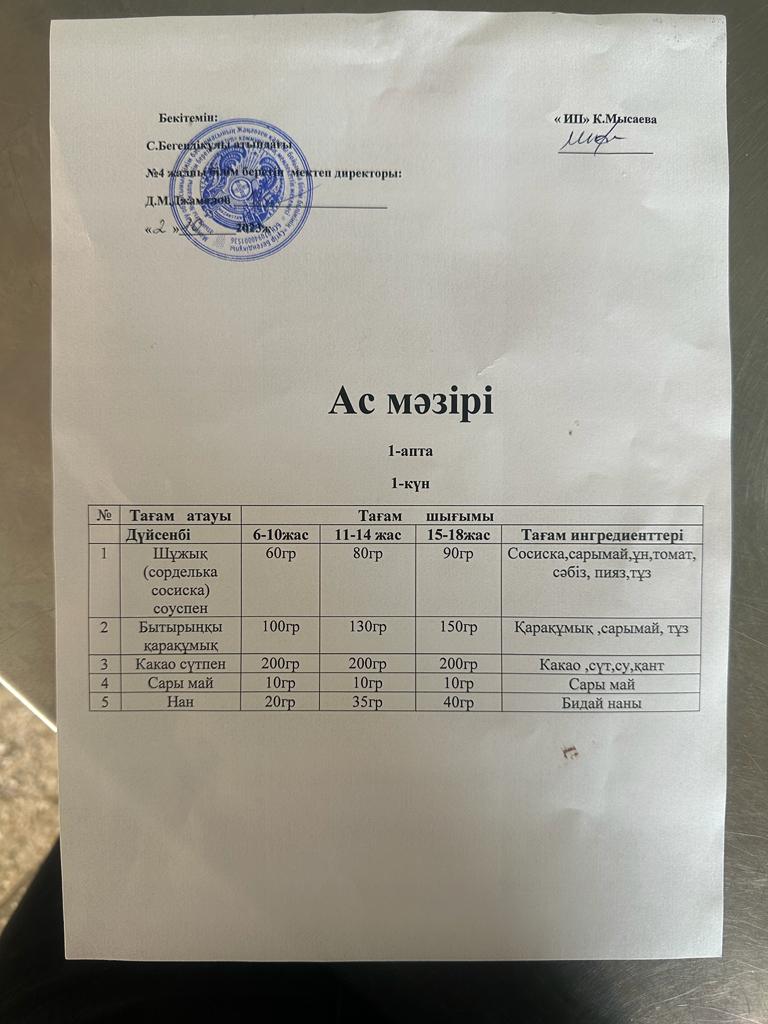02.10.2023ж 1-4 сынып оқушыларының ас мәзірі