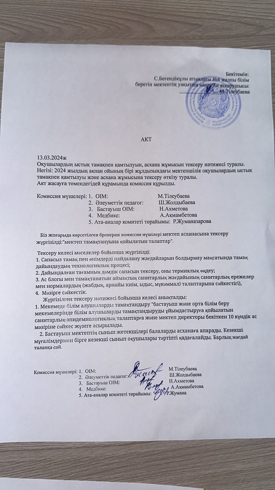 Сүгір Бегендікұлы атындағы № 4 жалпы білім беретін мектеп