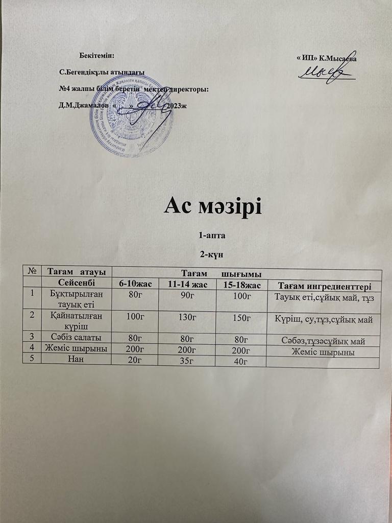 05.09.2023 ж. 1-4 сынып оқушыларының тамақтануы