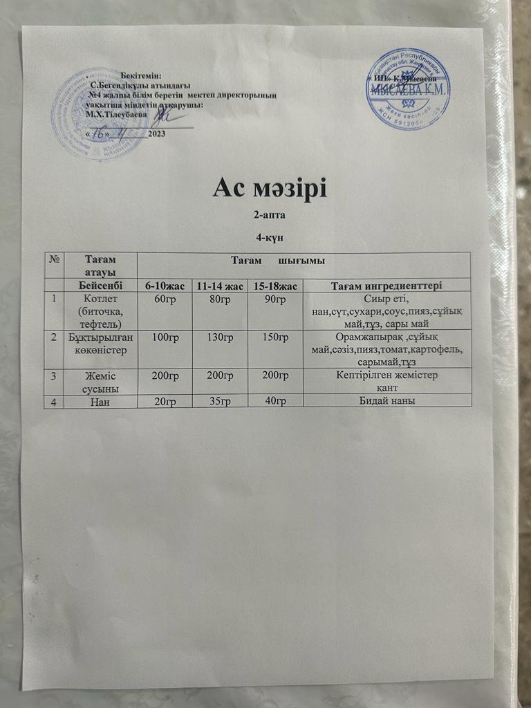 16.11.2023ж 1-4 сынып оқушыларының ас мәзірі