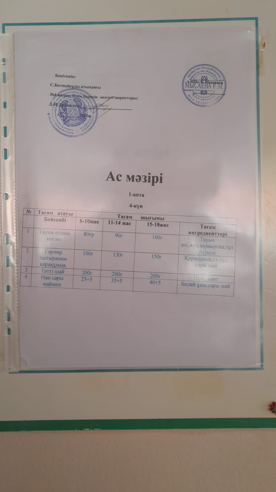 21.09.2023ж 1-4сынып оқушыларының ас мәзірі