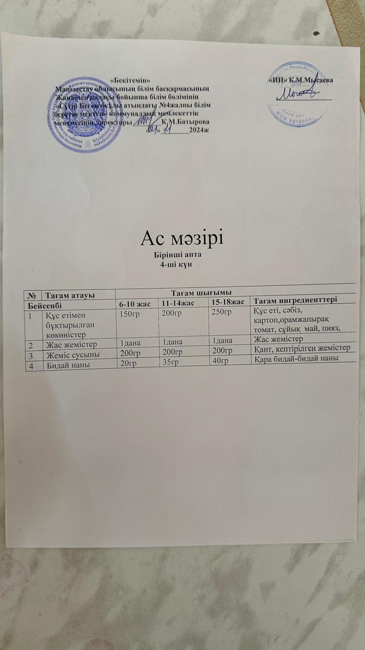 Сүгір Бегендікұлы атындағы № 4 жалпы білім беретін мектеп