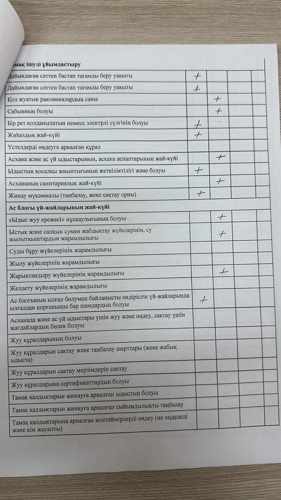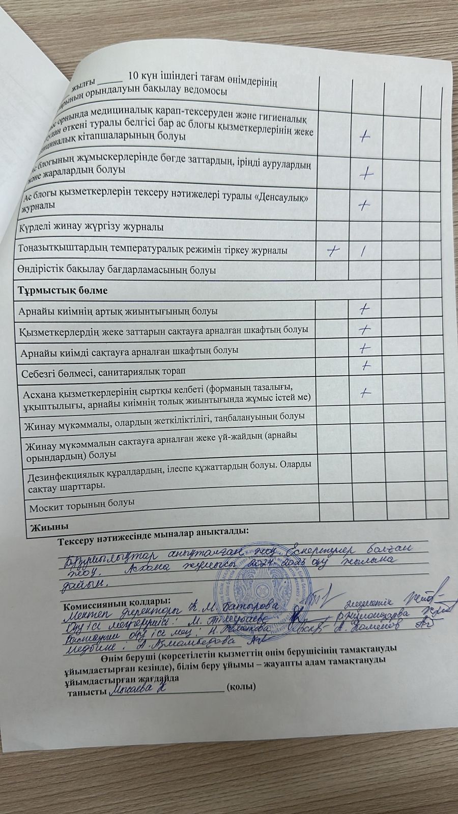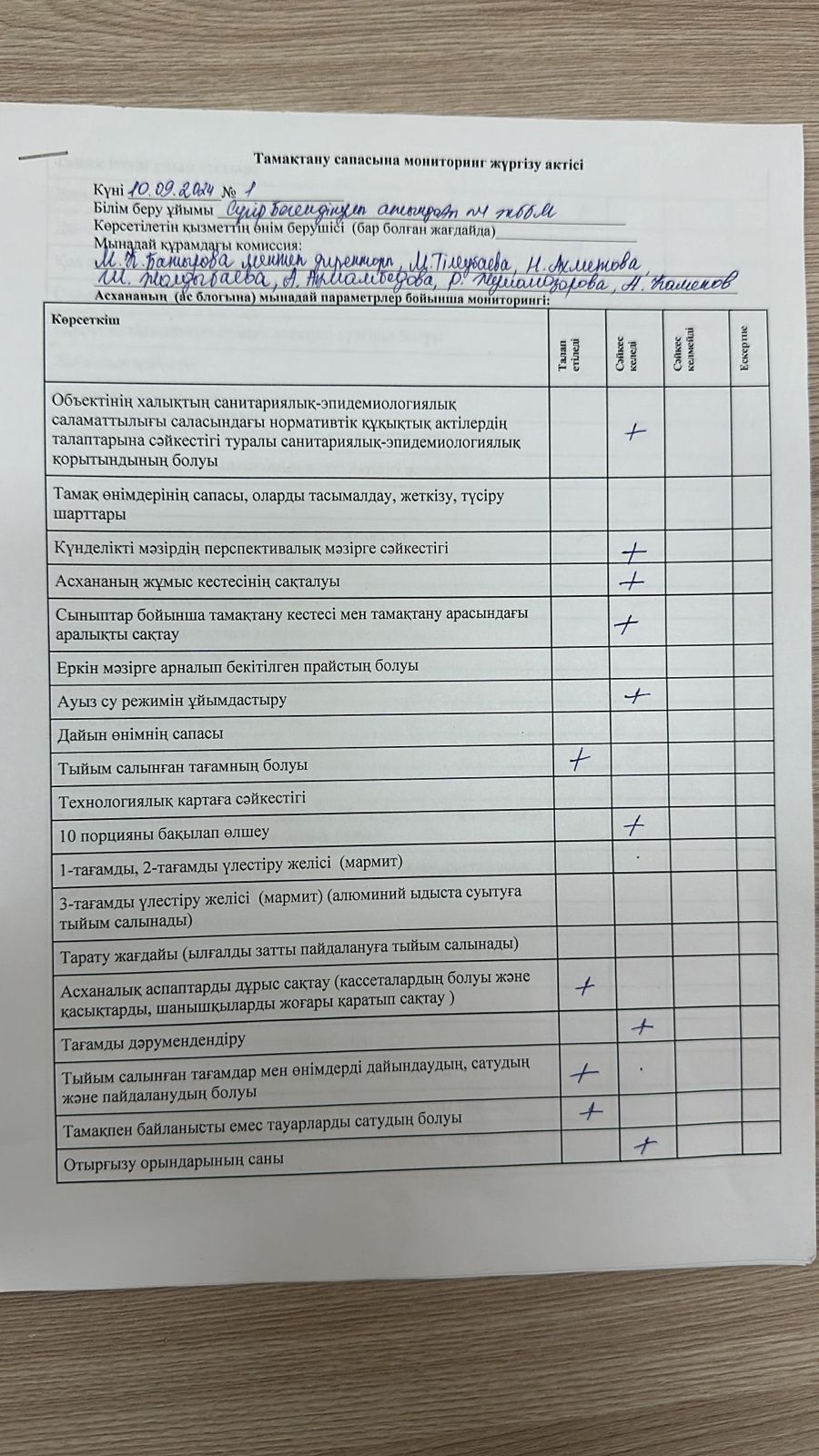 • Тамақтану сапасына мониторинг жүргізу актісі