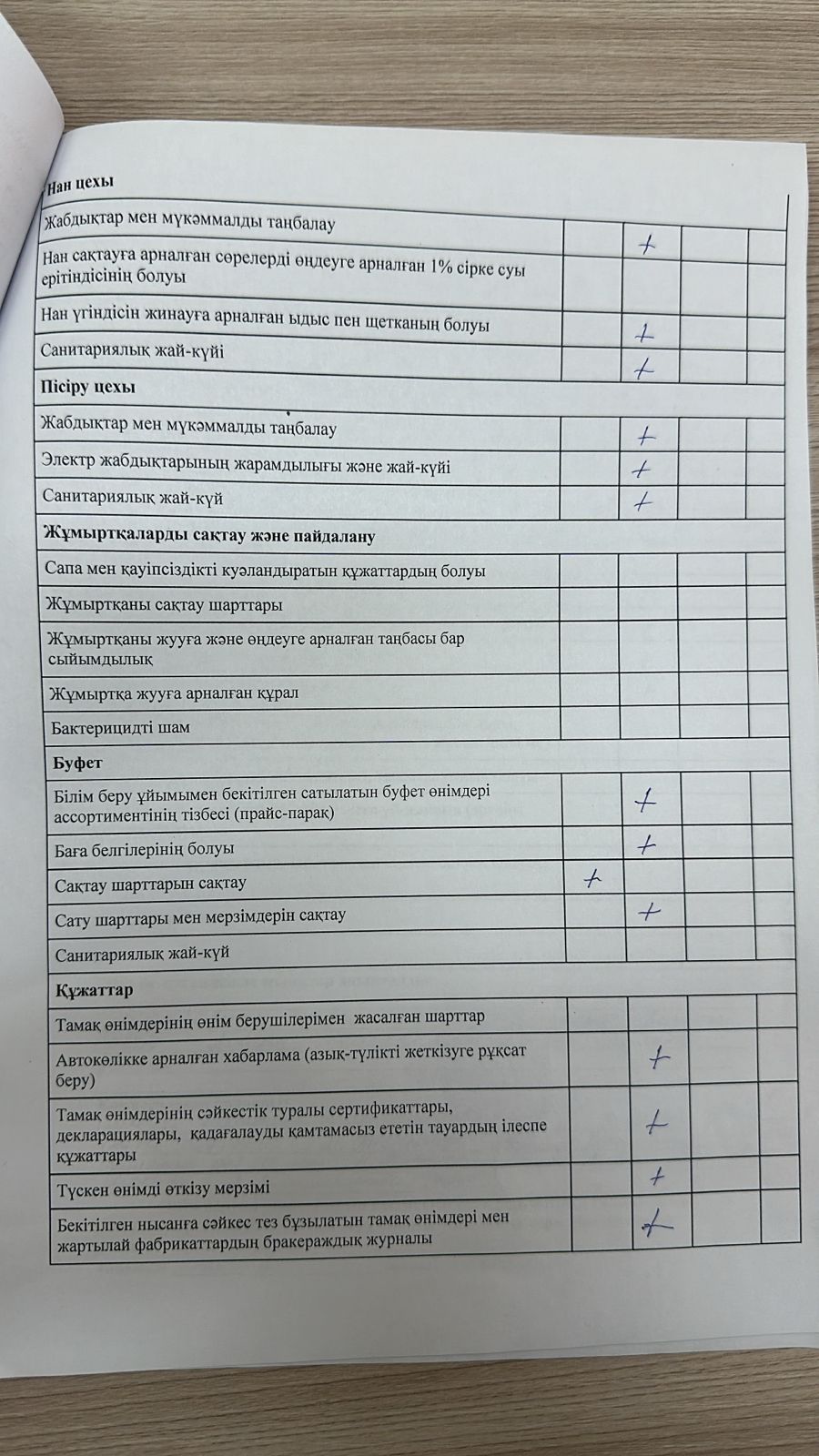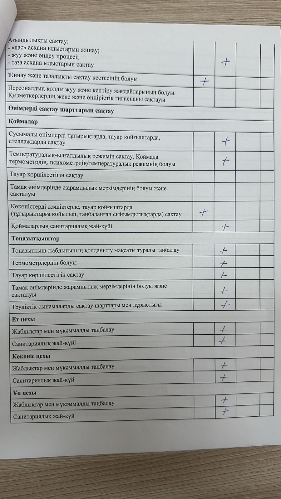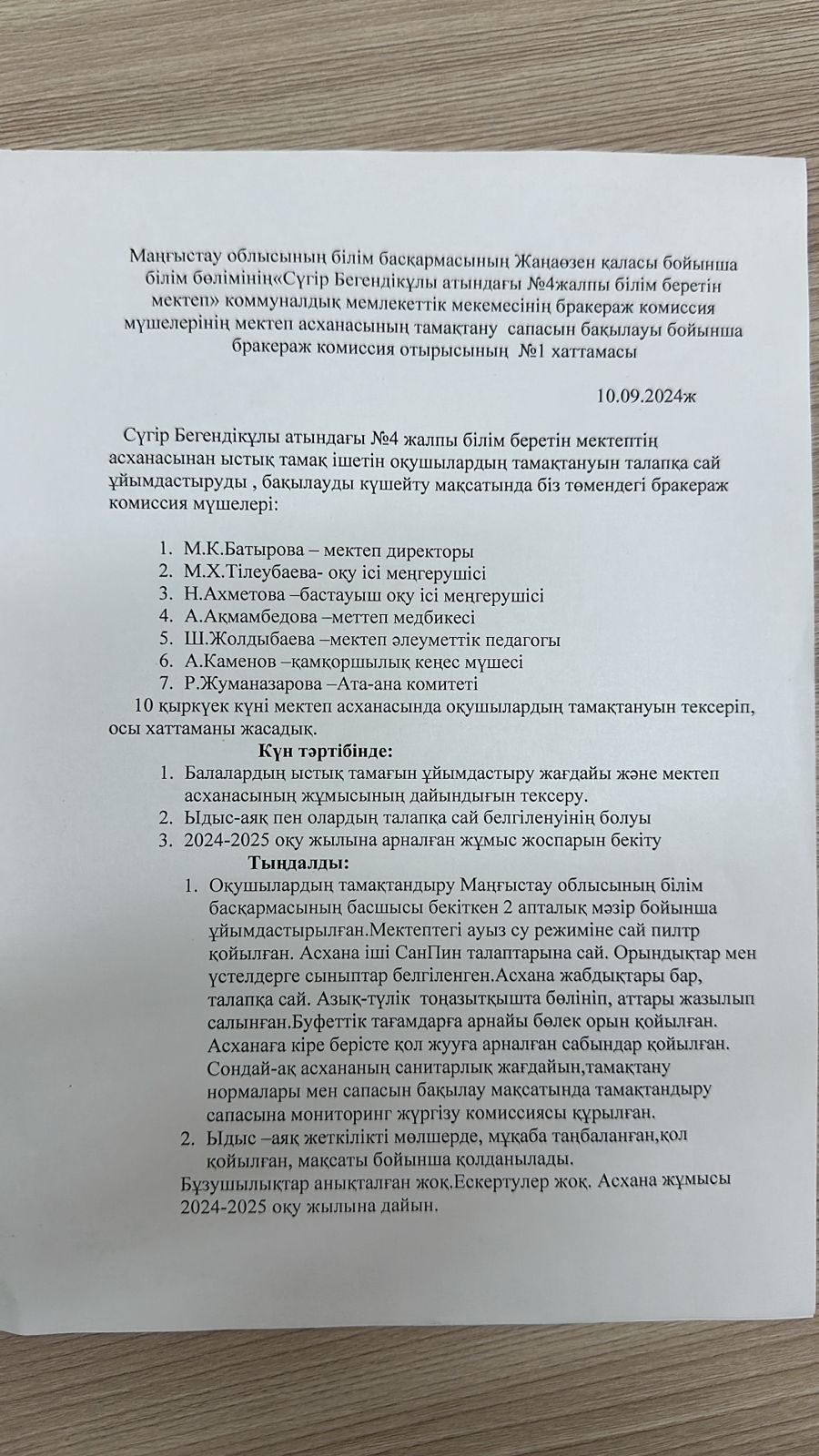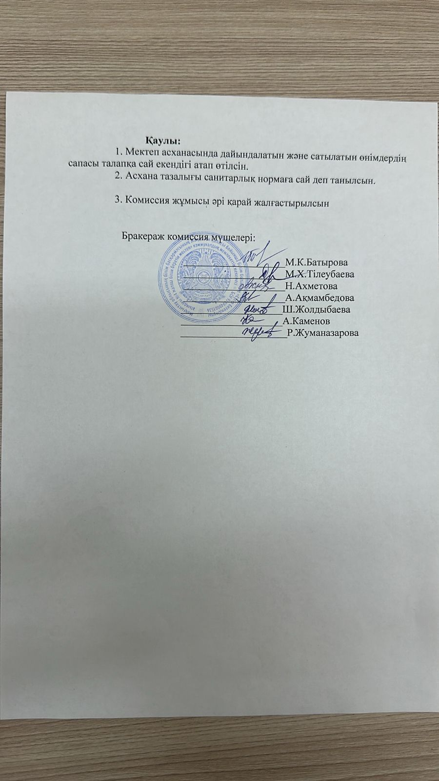 • Тамақтану сапасына мониторинг жүргізу актісі