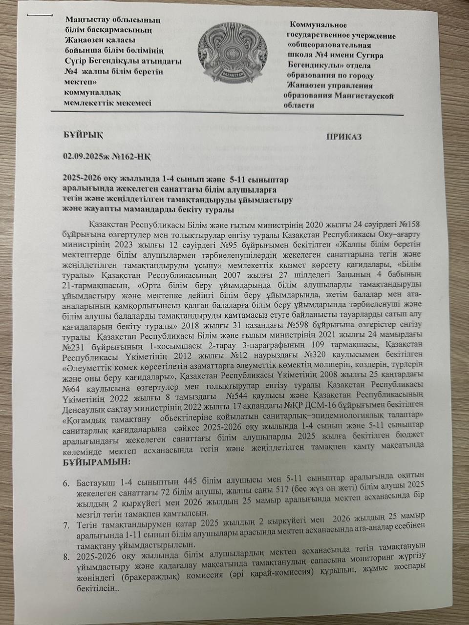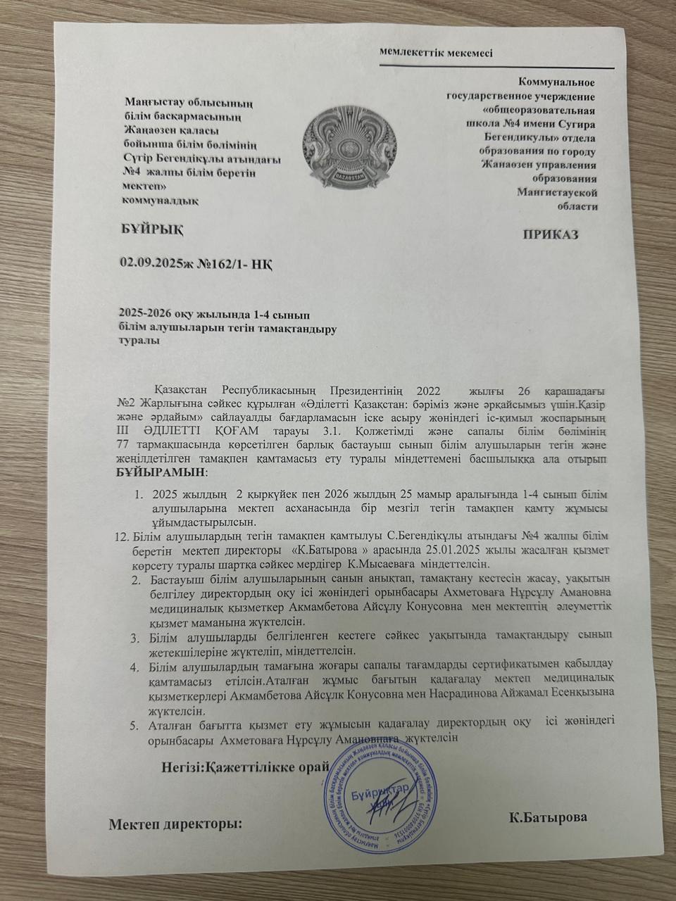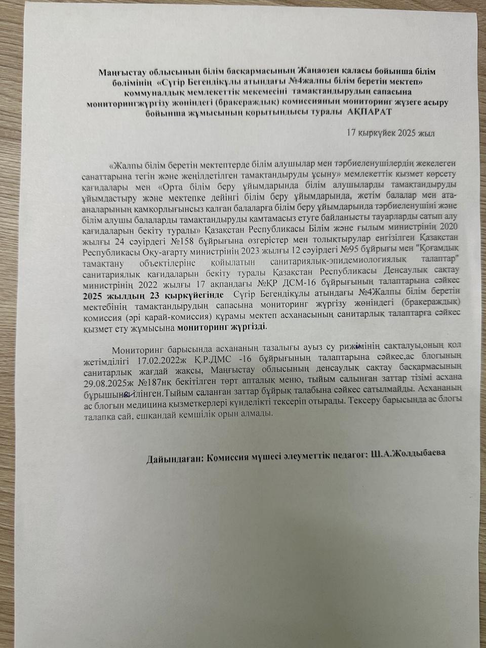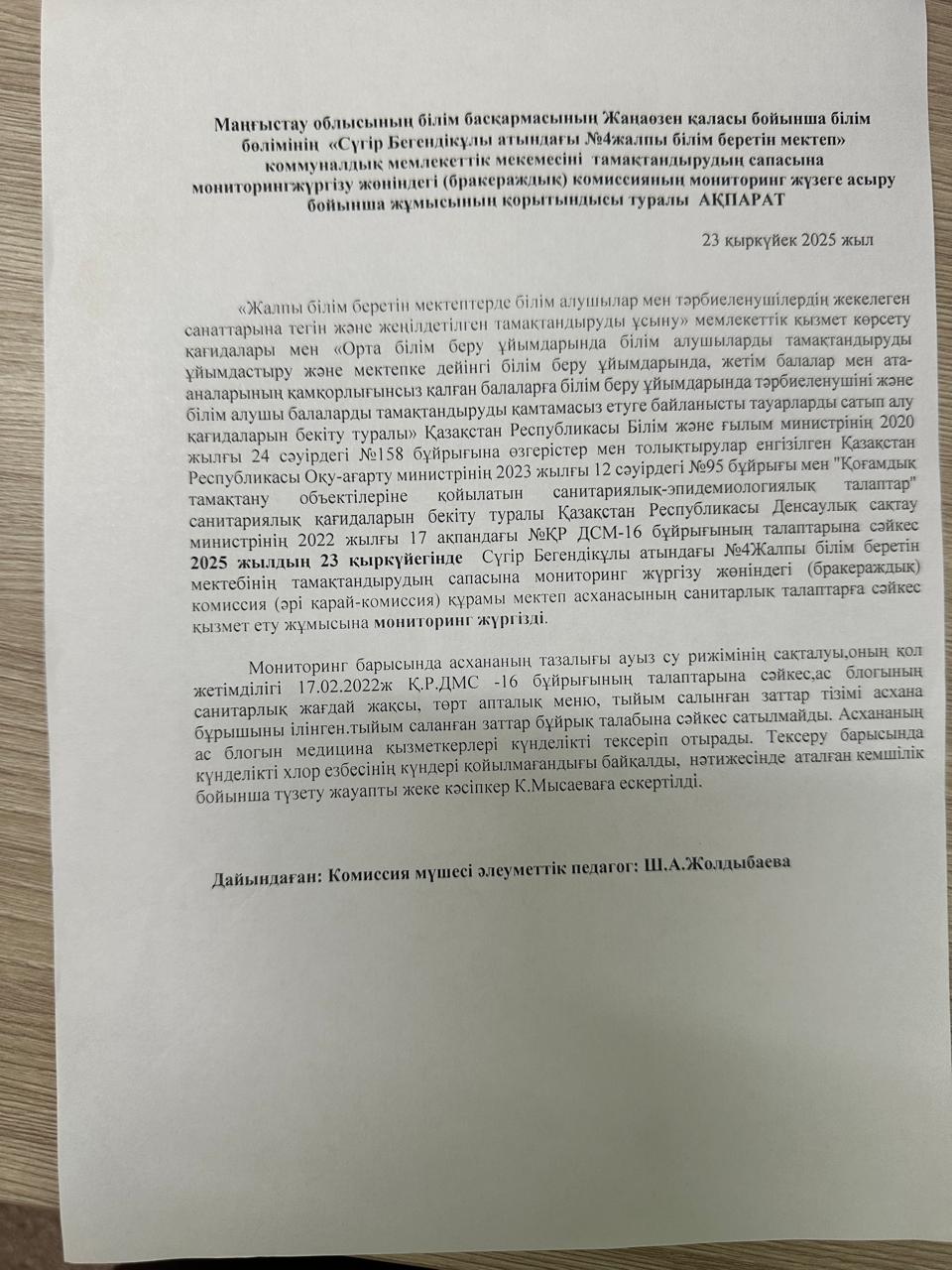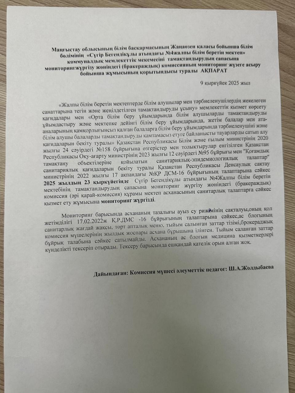 Сүгір Бегендікұлы атындағы № 4 жалпы білім беретін мектеп