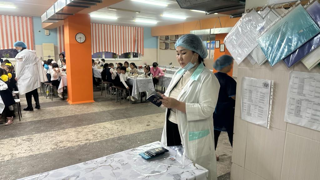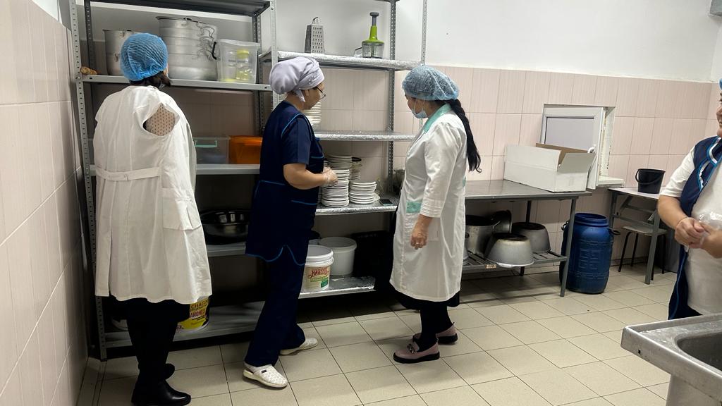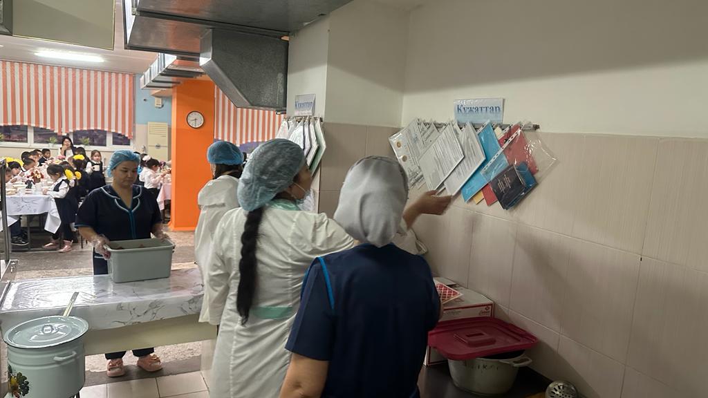 2. Асханадағы тамақ даярлау орындарын және шикізат сақтау қоймаларын көру және ондағы өнімдердің пайдаланудағы уақыт мерзімі мен сертификаттарын тексеру. 3. Асхана тазалығы мен пайдаланған ыдыстардың жуу орындарын және дезинфекцияның болуын тексеру. 5. Асхана жұмысшыларының санитарлық кітапшаларының болуын тексеру. 6. 1-11 сынып балаларының ыстық тамаққа уақытында келуін қадағалау.