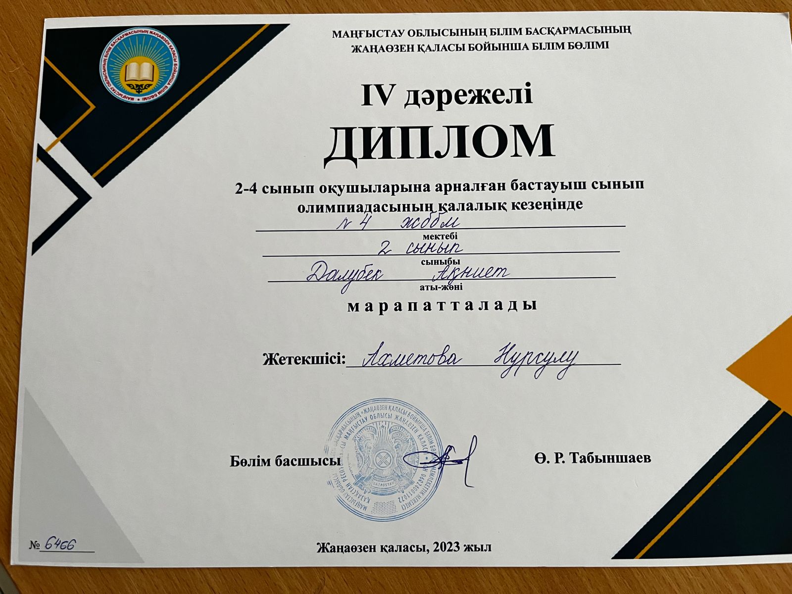 18.04.2023 жылы Жаңаөзен қаласы бойынша жалпы білім беретін мектептердің арасында 7-11 сынып оқушыларына арналған "Жарқын болашақ" республикалық қазақ тілі олимпиадасының қалалық кезеңінде "Жас қаламгер" бағыты бойынша 8"А"сынып оқушысы Епікбай Ақмоншақ жүлделі III орынды, "Бейнелеушілер" бағыты бойынша 9 "А" сынып оқушысы Асылбек Ардақ IV орынды, "Әнші бұлбұлдар" бағыты бойынша 9 "Б" сынып оқушысы Құлбай Аделя IV орынды иеленді. Оқушыларымыз бен дайындаған мұғалімдері Қожахметова Гаухар, Аккулова Гүлназды құттықтаймыз, биік белестерді бағындыра беруіне тілектеспіз